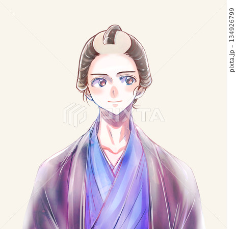 側邊長袖和服女插畫單人(帶妝)無季節無背景