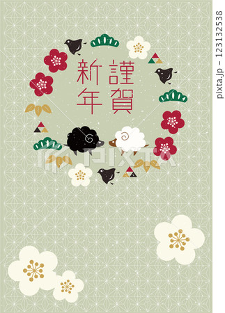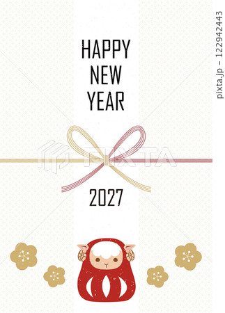 慶祝羊年的新年賀卡模板插圖,日式風格,2027 年