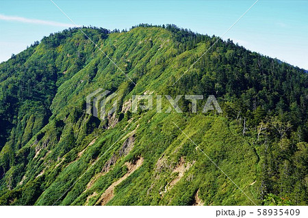 夏季從北八岳與中山峠之間的山脊線向西北方向看八岳