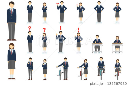平面插圖:高中生前線(冬季服裝)