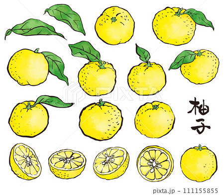 冬季柚子插畫集:帶葉柚子和不含葉柚子,水彩手繪