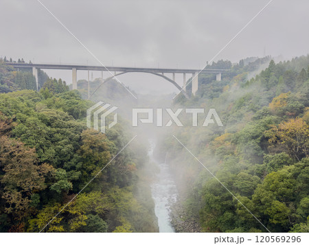 在秋葉中閃耀的岡城遺址周圍道路上的城堡鋼琴戶外舞台(模型圖像)(大分縣竹田市)