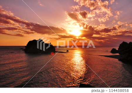 從兵庫縣香美町香住的大神公園眺望日本海的秋景