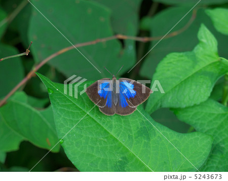 生物昆蟲Murasaki Shijimi,在炎熱的一天休息,在昏暗的森林裡