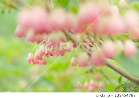 初夏時節,鐘形吊蘭(Enkianthus campanulatus)的花朵宛如鐘形,營造出柔和的氛圍。