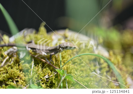 一隻蜥蜴(日本草蜥)在岩石上休息