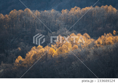 北海道新冠町,林道沿線的落葉松秋葉[11月]