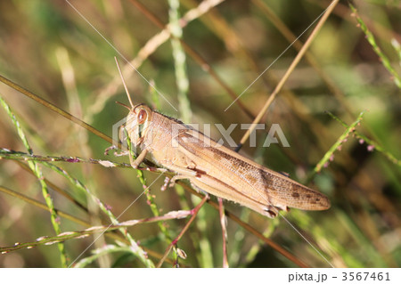 秋高氣爽的草地上的蝗蟲(微距鏡頭,閃光燈+自然光,特寫照片)