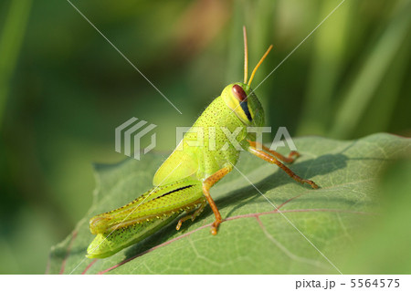 葛葉上的蚱蜢科蝗蟲的幼蟲