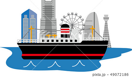 從大棧橋碼頭看到的NYK冰河丸和橫濱海洋塔