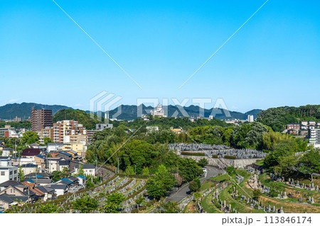 [世界遺產姬路城] [日本名城百選] 從名古山靈園眺望市區和姬路城2 兵庫縣姬路市
