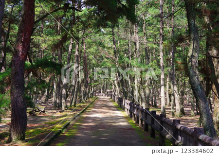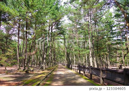 陽光透過樹葉的小牧黑松林(山口縣光市虹濱)