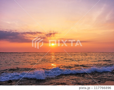 沖繩縣讀谷村東慶寺海灘美麗的日落景色