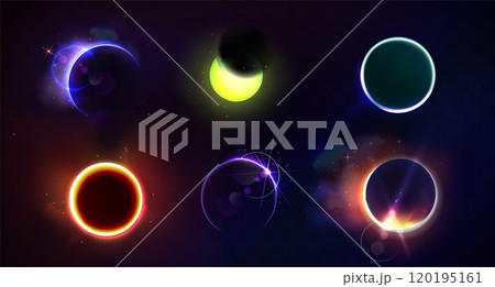 Solar Eclipse Moon Sun Light Effects Set. Abstract Overlay. Vector
