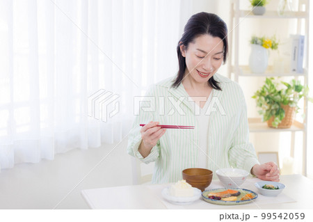 用餐場景 一位中年婦女正在用餐