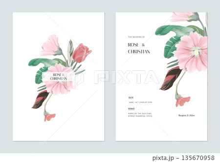 Floral wedding invitation card template design, various types of flowers and leaves bouquet