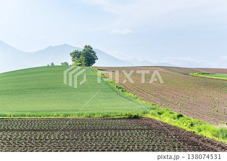 北海道美瑛町,夏天的北海道,北方的土地(田野)和藍天染上綠色(北海道圖)