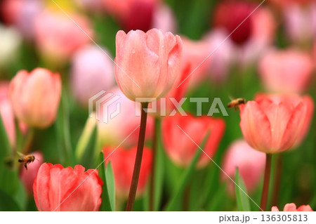 美麗的鬱金香(洋荷花,旱荷花,草麝香,鬱香,紫述香)與蜜蜂