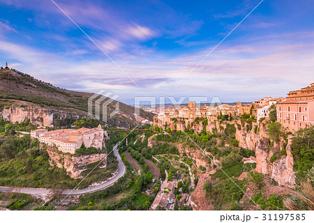 Panoramic view of Cuenca and famous hanging houses, Spain.