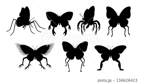 Black Solid Leg Structure Butterfly Silhouettes Set of Six on White Background