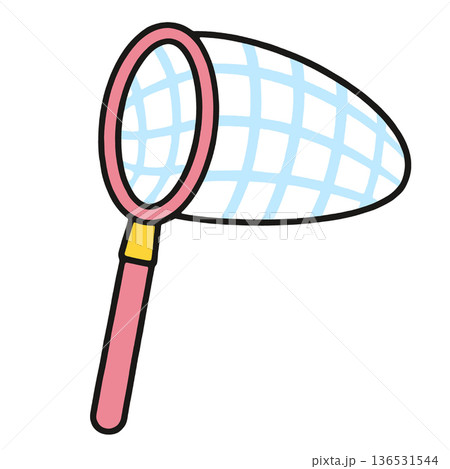 Butterfly net, insect net, pink handle, blue mesh, simple illustration, white background