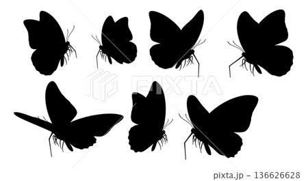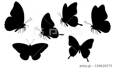 Black Solid Proboscis Length Butterfly Silhouettes Set of Six on White Background