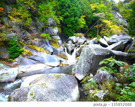 [瀑布素材]秋天的昇仙峽、仙賀瀑布和彩虹[山梨縣]