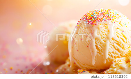 Melting Vanilla Ice Cream with Colorful Sprinkles