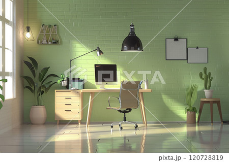 Minimalist office interior, 3D animation, flat design with ergonomic furniture