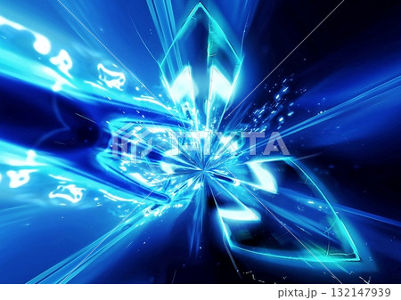 無數抽象藍光箭頭在技術概念中移動的 3D 插圖