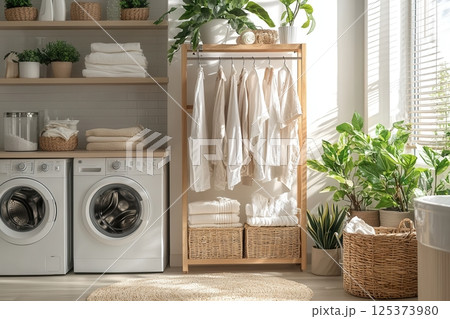 Peaceful nursery interior with modern air conditioner using sustainable energy to cool air. Comfortable room showing teddy bear on wooden armchair by bright window