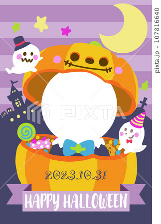 萬聖節明信片模板,上面有可愛的鬼魂和南瓜