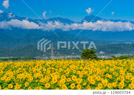 山梨縣北杜市明野町麻尾 - 明野向日葵節:盛開的向日葵田和八岳的景色