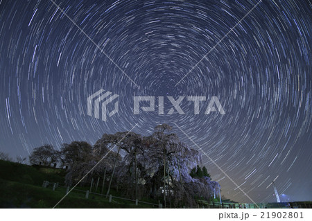 北極星的蹤跡和梯田上飛舞的螢火蟲的蹤跡