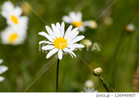 Daisies on mountain in Porto Venere. Flowers and nature in spring, Italy.