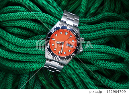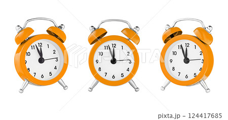 classic watch, pointer clock, Orange color alarm watch on isolated white background