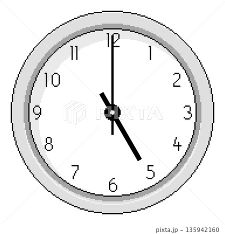 Pixel Art Clock at Five O'Clock - Vector Illustration