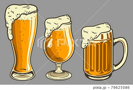Beer mugs with foam set in vintage style