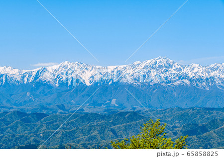 從大町市(仁川山,Kasumigatake山,鹿島山)觀看的北阿爾卑斯山脈