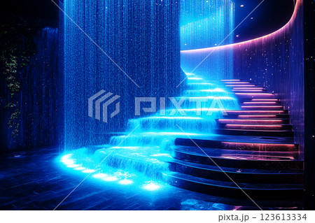 茨城縣袋田瀑布,日本三大瀑布之一,在黑暗中照亮
