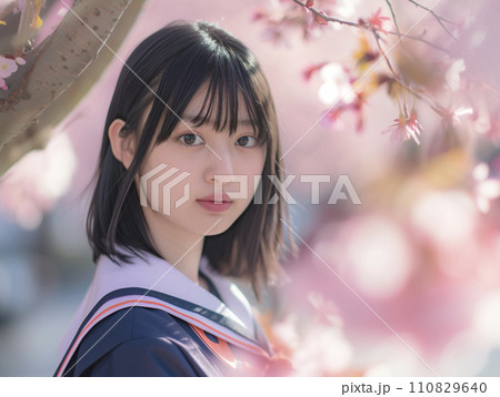 櫻花樹和女學生入學和畢業圖像(AI 生成圖像)
