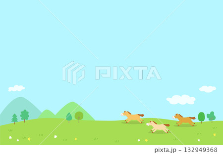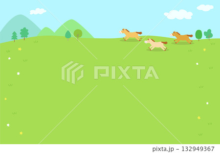 背景框插圖,描繪了馬匹在草地上奔跑的場景。