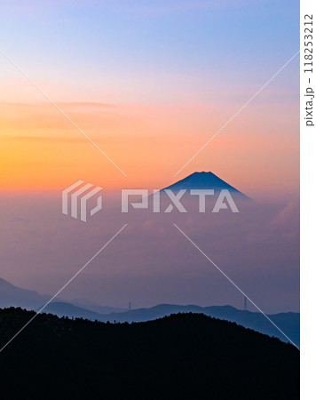 (山梨縣)從雁原折山看到的紅富士和山脈