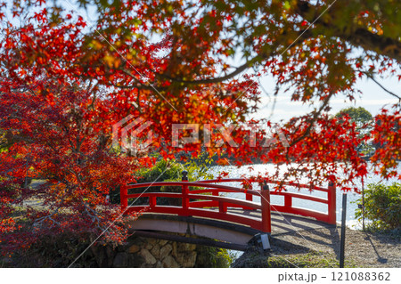 秋天的京都,京都御苑,鮮紅的楓樹和劍春門