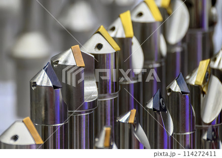 Close up scene the hole making tool for CNC machine in the light blue scene.