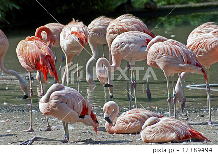 智利火烈鳥在水邊休息