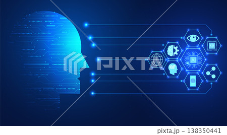 AI Artificial intelligence in humanoid with futuristic technology background. Future cybernetic artificial intelligence technology concept, vector illustration.