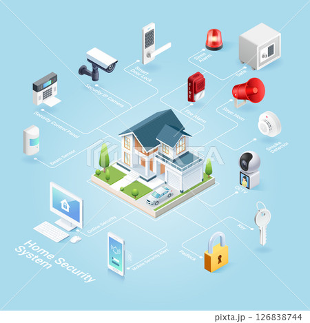 Smart Home Security Vector Illustration Featuring Home Automation Controlled Via Smartphone Through an Integrated Electronic System Background