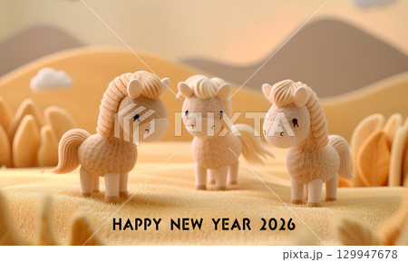 2026年新年賀卡素材(馬年、十二生肖、新年賀卡)橫向 - 賽馬