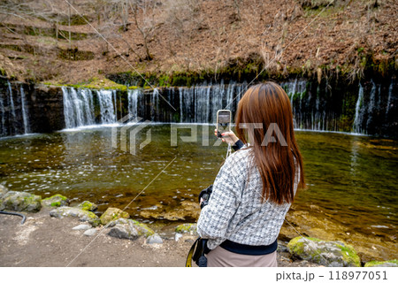 日本長野縣北作區伊澤市 — 2024年4月15日:白瀧瀑布位於日本長野縣北作區伊澤市。